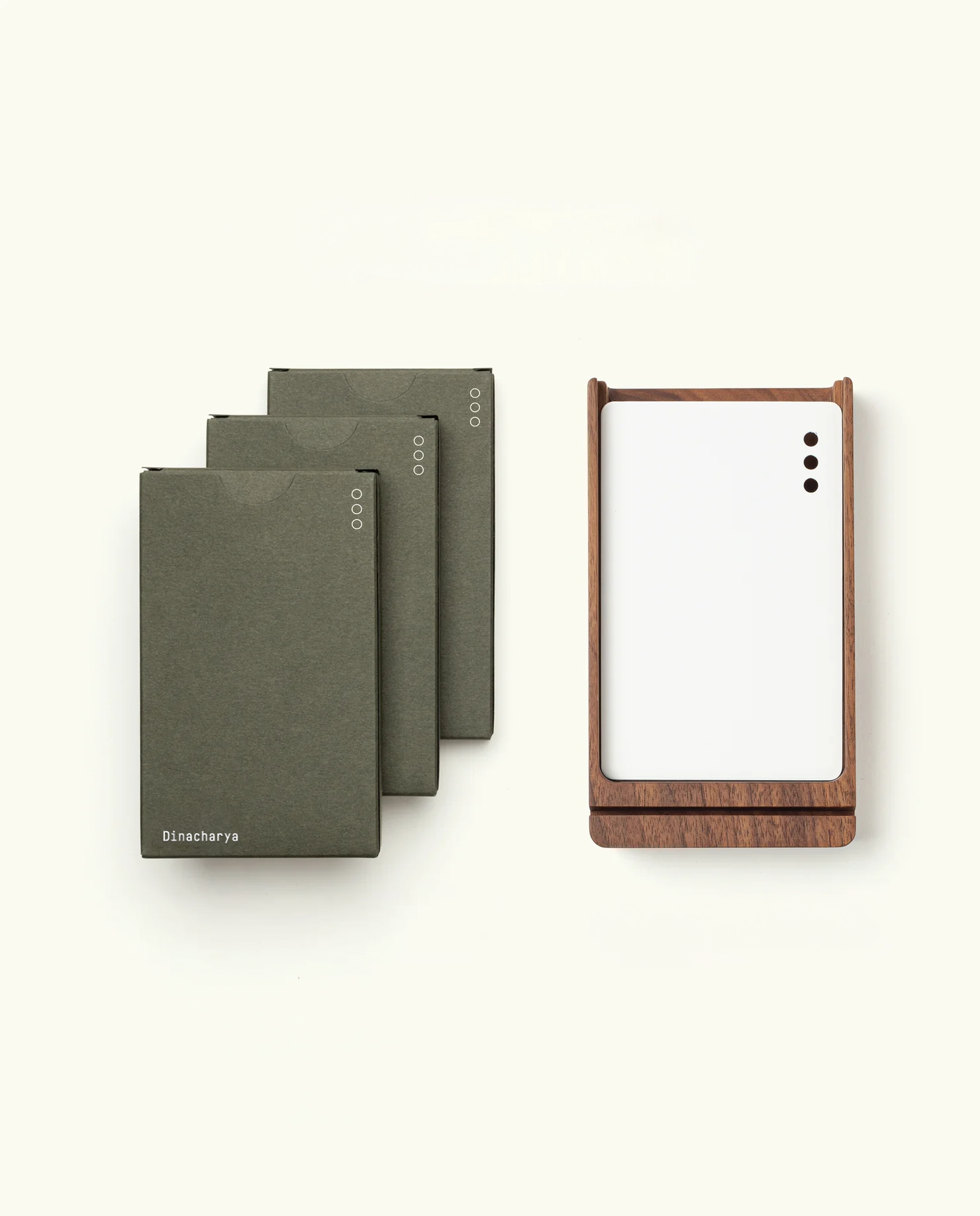 Crafted from high-quality thick paper and paired with a handcrafted Burma teak base, it becomes a simple yet powerful ritual for your desk.