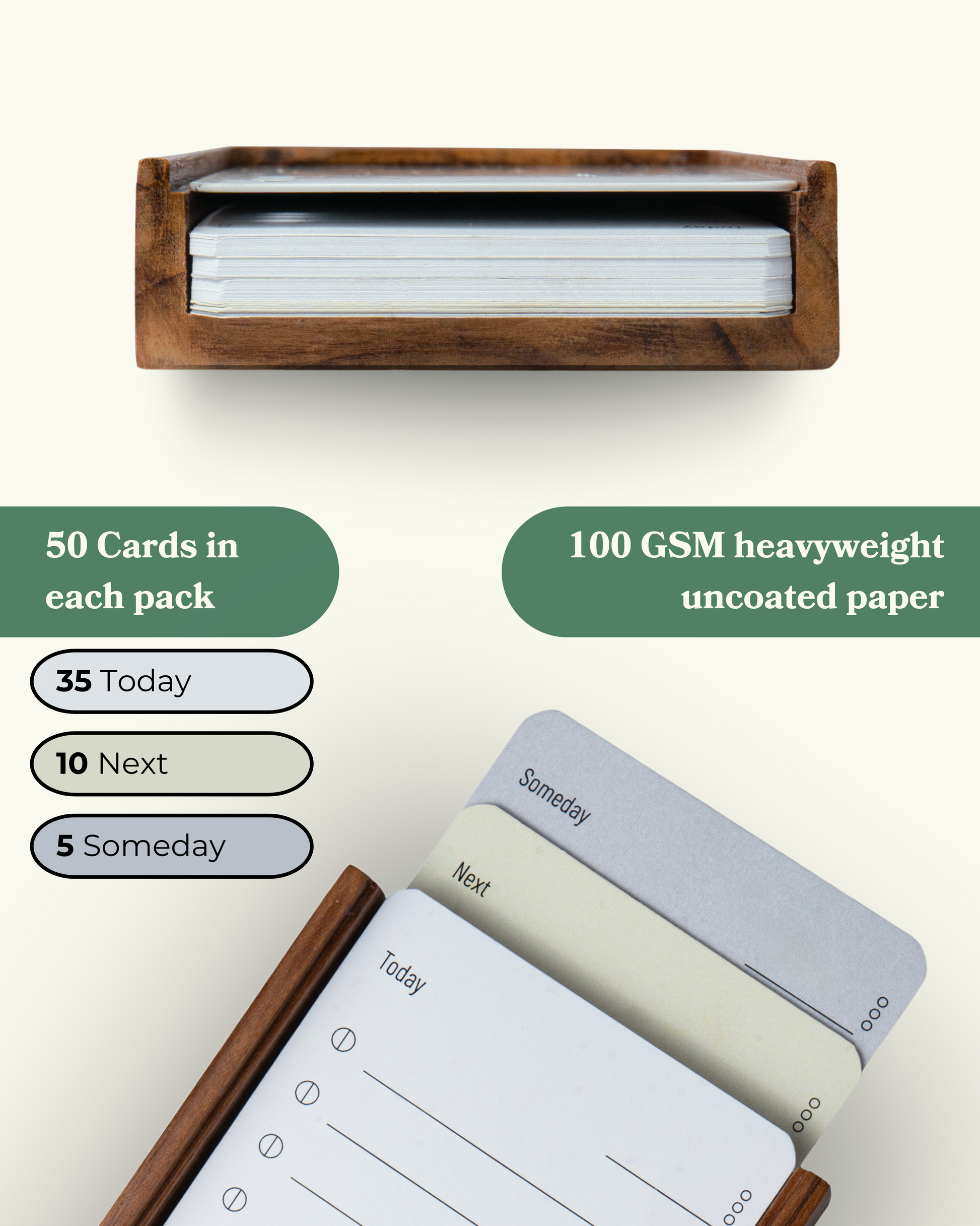 - 50 Productivity Cards – 35 Today, 10 Next, 5 Someday.