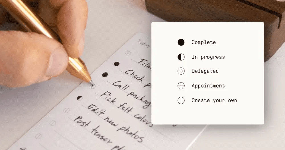As you move through the day, mark tasks as done, in-progress, or handed off — or even make up your own symbols!